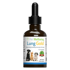 Lung Gold was developed by our holistic veterinarians to help cats boost their innate resistance to harmful infections that affect the lungs. These can compromise breathing and healthy oxygenation of tissues. Lung Gold works deep within the lungs to help maintain open (dilated) airways for easier breathing. For upper respiratory tract problems (runny eyes & nose, sneezing, hoarse throat and dry, hacking cough), consider Throat Gold.