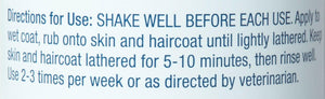 Shake well. Apply to wet coat, rub onto skin and haircoat until lightly lathered. Keep skin and haircoat lathered for 5-10 minutes, then rinse well. Use 2-3 times per week or as directed by veterinarian.