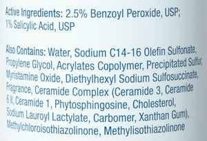 Active Ingredients: 2.5% Benzoyl Peroxide, 1% Sodium Thiosulfate, 1% Salicylic Acid, Ceramides