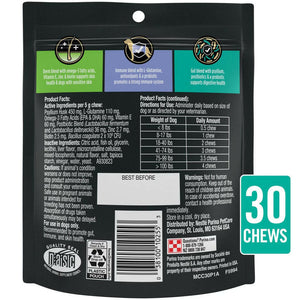Purina Pro Plan Veterinary Supplements Multi Care is a 3-in-1 daily supplement designed to proactively support your dog’s skin, digestive, and immune health. This multi-active blend contains a derm formula with omega-3 fatty acids, vitamin E, zinc, and biotin for sensitive skin, a gut blend with psyllium, prebiotics, postbiotics, and probiotics for digestive wellness, and L-glutamine with antioxidants for strong immune support.